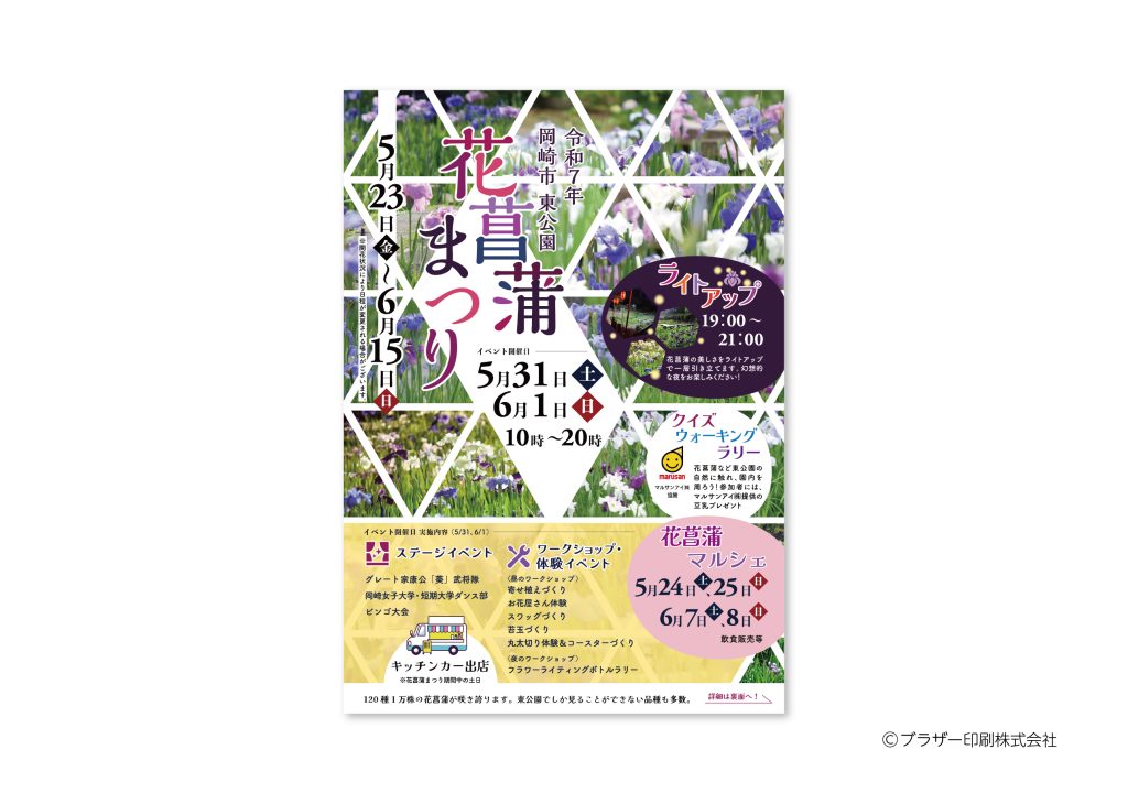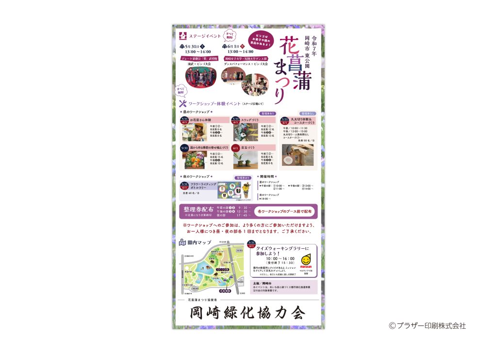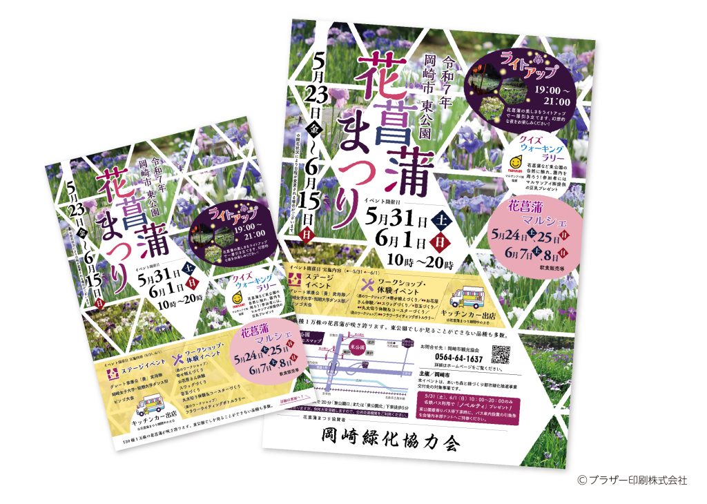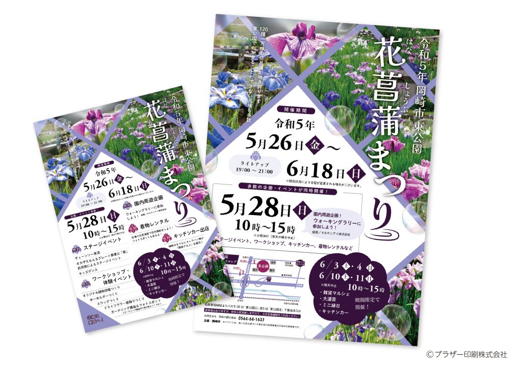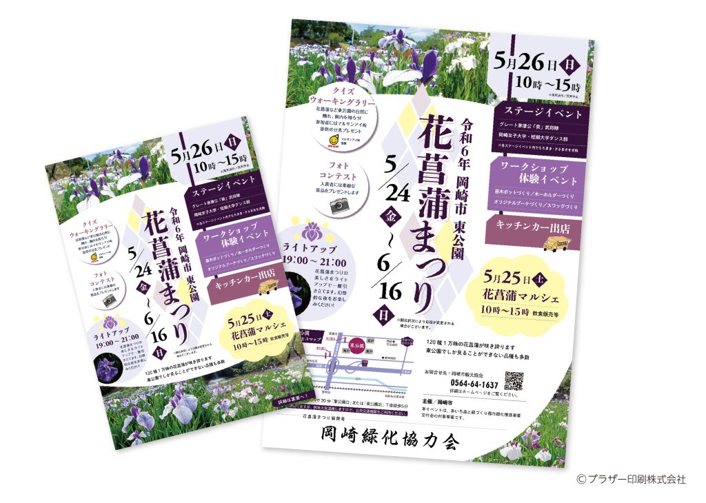 毎年恒例のイベント「花菖蒲まつり」のチラシ・ポスターを制作させていただきました。